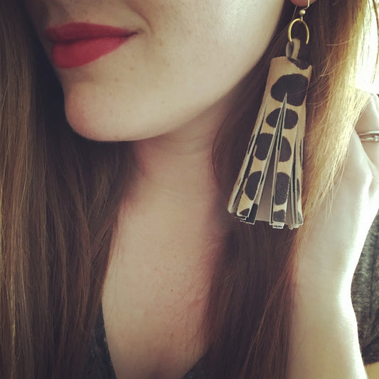 leopard chunky tassel earrings