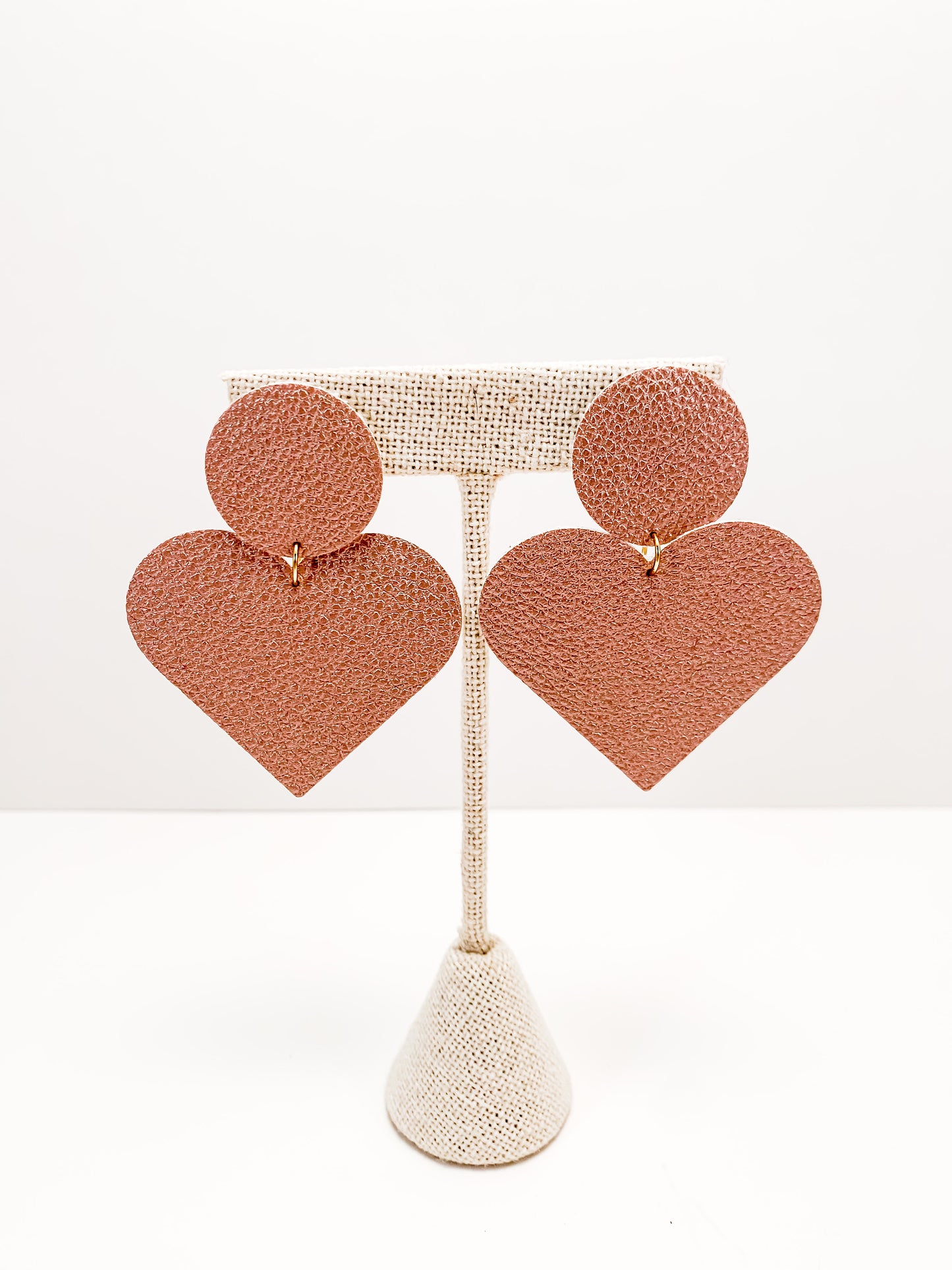 Faux leather heart hanging from a faux leather circle with a stainless steel stud